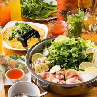 鶏ガラスープでたっぷりパクチー鍋コース(4品) さっぱりとした鶏ガラでパクチーと素材を たっぷり味わえる、パクチー好きには嬉しい、 やみつき鍋☆お好みで数種のハーブを ブレンドした特製ピリ辛ダレを付けて♪ お肉、野菜、豆腐やキノコなど沢山の食材を お楽しみください!今夜はパクチ―鍋で決まりっ*:・。 ※画像はイメージです。 3,980円