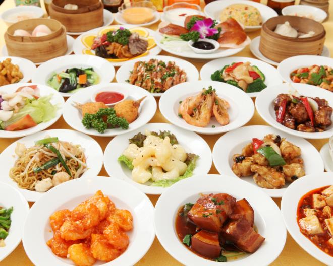 全133品時間無制限食放題+ドリンクバー2830→2280円 コース内容(全133品)【人気ベスト8】鮮肉小龍包、エビ蒸し餃子、春巻、フカヒレ餃子、胡瓜の絶品和え、ユーリンチー、チャーシュー、焼き餃子【点心】チャーシューまん、ラー油ワンタン、肉シュウマイ、ニラ焼きまん、水餃子、チマキ、ゴマ団子、大根餅、花巻、桃まん、揚げワンタン、キムチ、ピータン豆腐、ザーサイ、大根とニンジンの甘酢つけ、豚ミミの冷菜、砂肝の和え物【飯類】牛肉入りチャーハン、カニ肉入りチャーハン、エビチャーハン、フカヒレあんかけチャーハン、黒チャーハン、キムチチャーハン、麻婆丼【お粥・スープ】干し貝柱入りお粥、ピータン入りお粥、フカヒレスープ、コーンスープ、サンラータン、ワンタンスープ【麺類】五目タンメン、タンタン麺、チャーシュー麺、海鮮入り焼きビーフン、上海焼きそば、五目あんかけ焼きそば、香辣醤焼きそば【デザート】マーラーカオ、アンニン豆腐、マンゴープリン【一品料理】北京ダック、エビのチリソース、エビのマヨネーズ、マーボー豆腐、豚の角煮、黒酢スブタ、よだれ鶏、【前菜】三種冷菜の盛り合わせ、バンバンジー、台湾風腸詰、くらげの和え物、【海鮮】カニ玉、白身魚の甘酢炒め、季節野菜とイカの炒め、高菜とイカの炒め【野菜】椎茸と青梗菜の炒め、もやし辛口炒め、小松菜の炒め、茄子とピーマンの炒め【肉料理】スペアリブの醤油煮、牛肉とピーマンの細切り炒め、豚足の煮込み、細切り豚肉の四川風炒め、生姜焼き、牛肉の四川風煮込み、鶏肉の辛味炒め、若鶏の四川風唐辛子の炒め、黒胡椒入りの牛肉と玉葱の炒め、ハチノスの四川風炒め 等 2280円