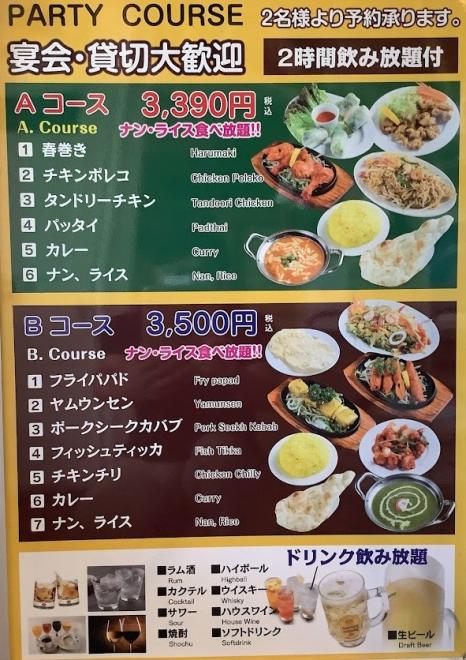 パーティーコース【ナン、ライス食べ放題+2時間の飲み放題付】