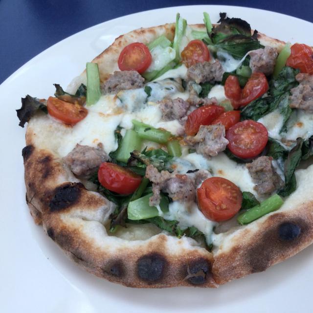 自家製ソーセージと小松菜のピザ