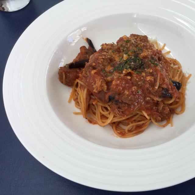 豚肉と茄子のトマトソースパスタ