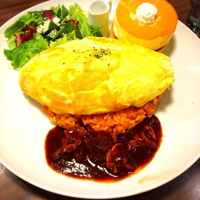 オムライスとパンケーキセット