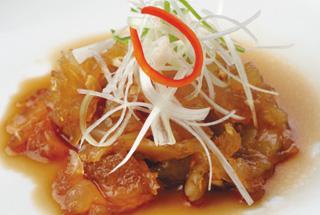 - クラゲのニンニク黒酢漬け