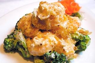 - プリプリの海老にマスタード風味のマヨネーズを合わせるのが青蓮風。 980円