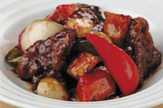 - 濃厚で独特の風味のする鎮江黒酢で仕上げた酢豚。 830円