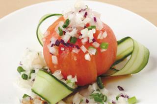- 湯むきされたトマトを丸ごと使ったヘルシーサラダ 480円