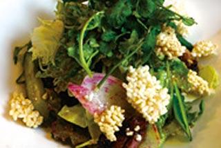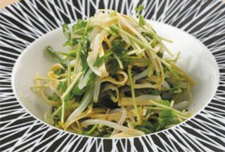- 中国湯葉と豆苗を使った柚子胡椒がアクセントのヘルシーサラダ 690円